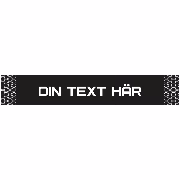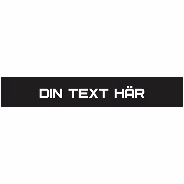 Board/vindrutestreamer universal, med raka kanter och utan vinklar. Välj mellan olika stilar. Standard typsnitt enligt bild, önskas annat typsnitt kan du höra av dig till oss.