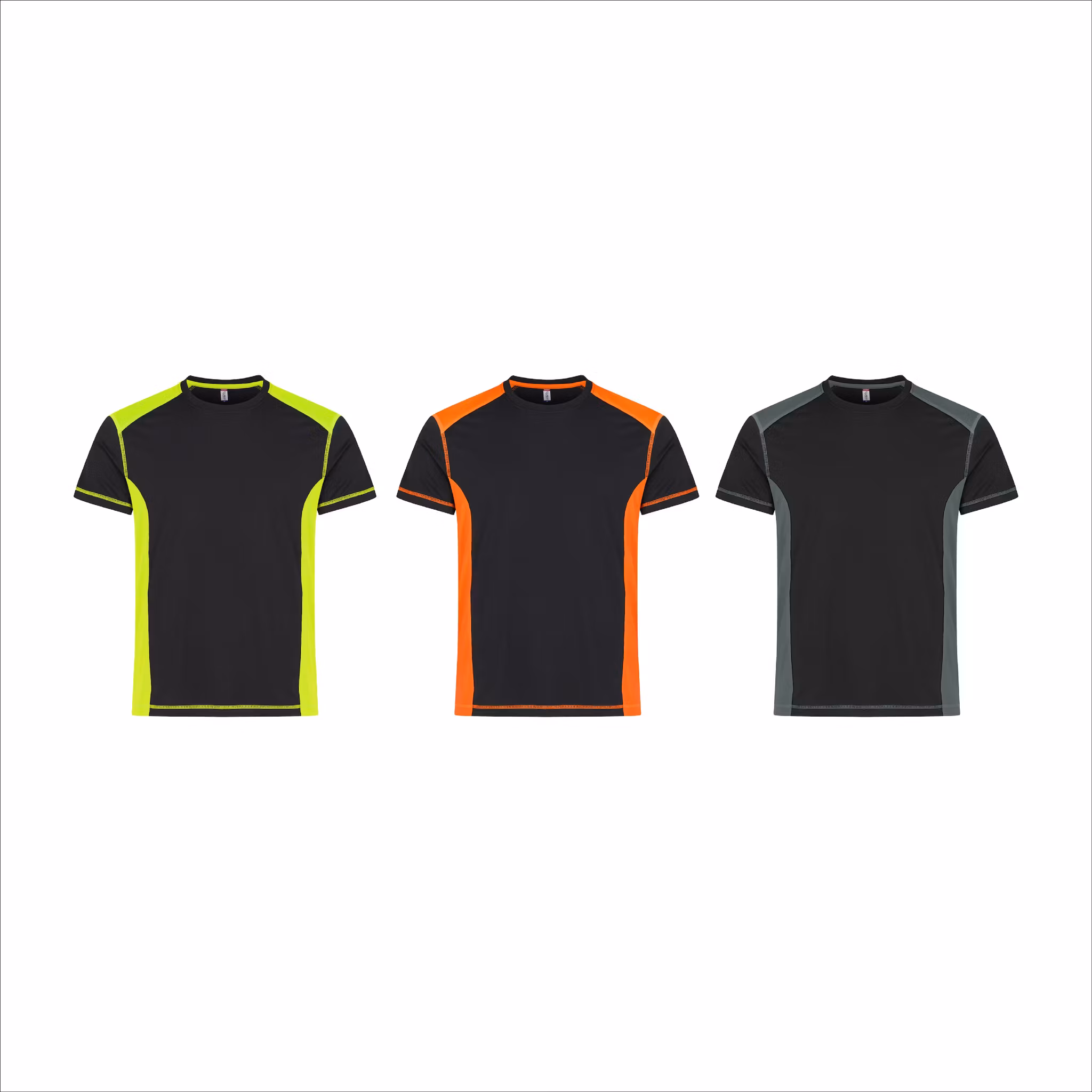 Kontrastt-shirt för ökad synlighet. Kontrastsömmar, elastan i kragribb och förstärkt nackband.