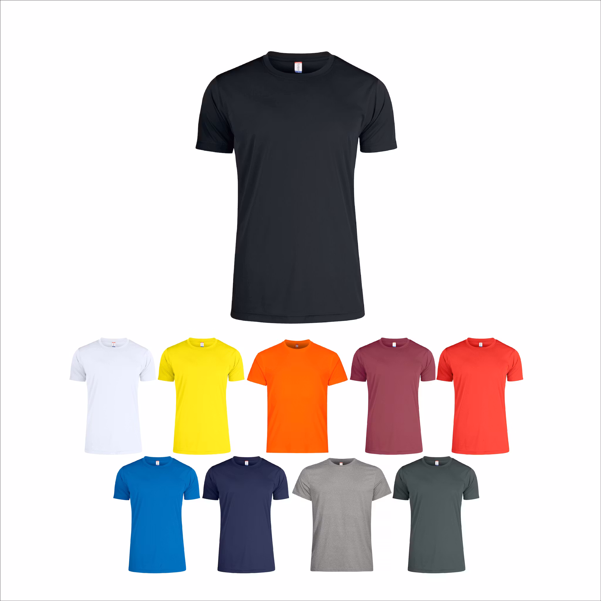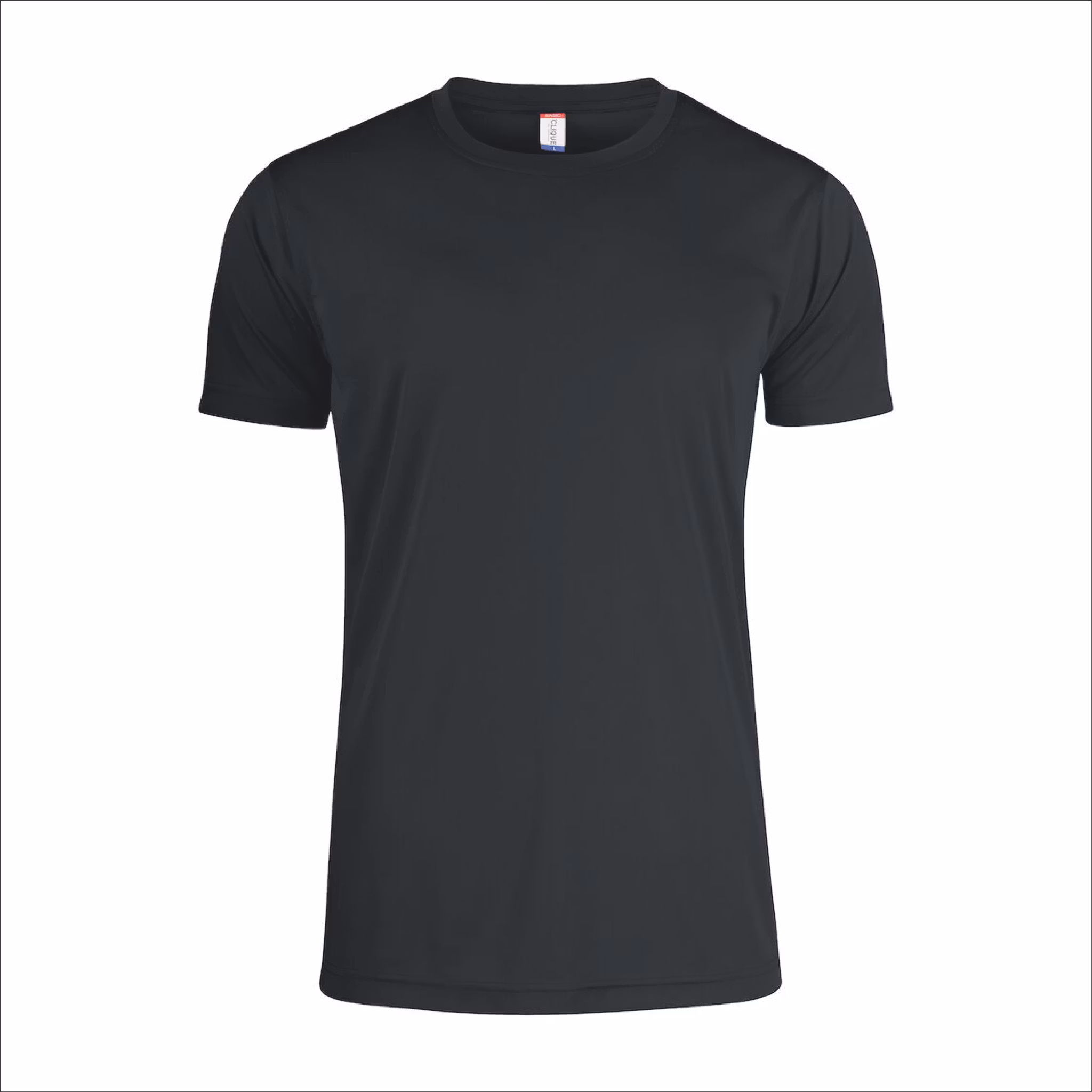 Cliques Basic spun dyed funktions t-shirt gjord med interlock stickning, sidsömmar, förstärkt nackband samt en avtagbar nacketikett för att enkelt kunna addera egen avsändare. Spun dyed är en process där färgpigment adderas direkt till textfibern. Detta reducerar markant såväl mängden vatten som kemikalier som används vid själva produktionen. Vilket i sin tur innebär en än mer miljövänlig produktion som dessutom ger ett bättre färgdjup och färgbeständighet.