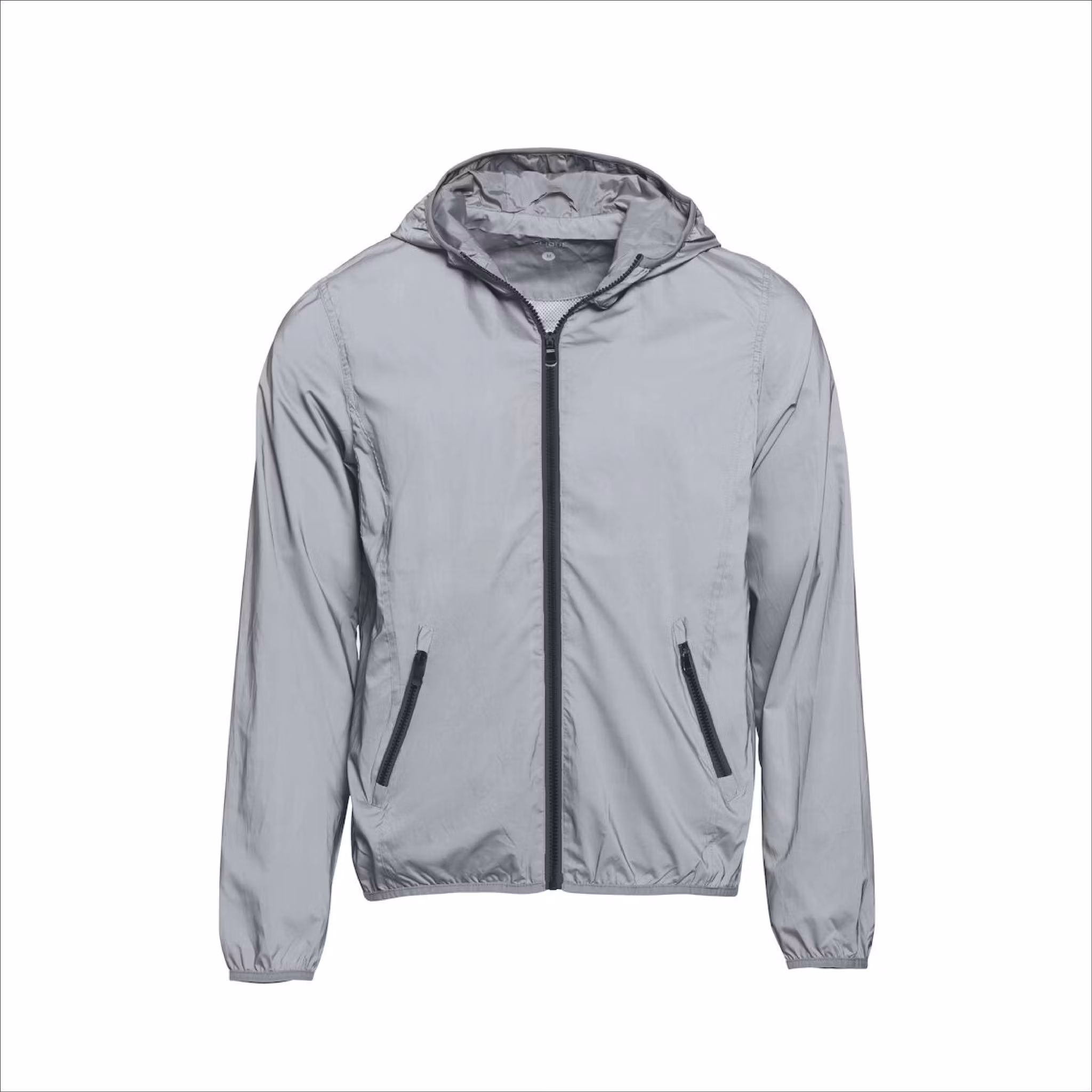 Modern vindjacka i fullständig reflex med fast huva samt metalliknande dragkedjor. Meshfoder på insidan. CE märkt. Reflekteringsindex 250.